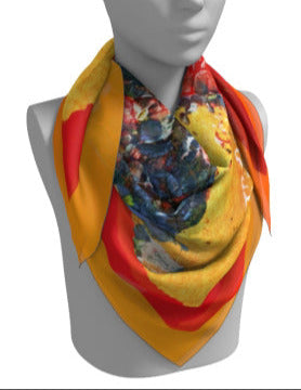 Made in Spain from concept to completion, all our scarves are transformed from intuitive paintings, on to 100% natural silk with hand rolled hem to provide a durable yet delicate edge finish.
