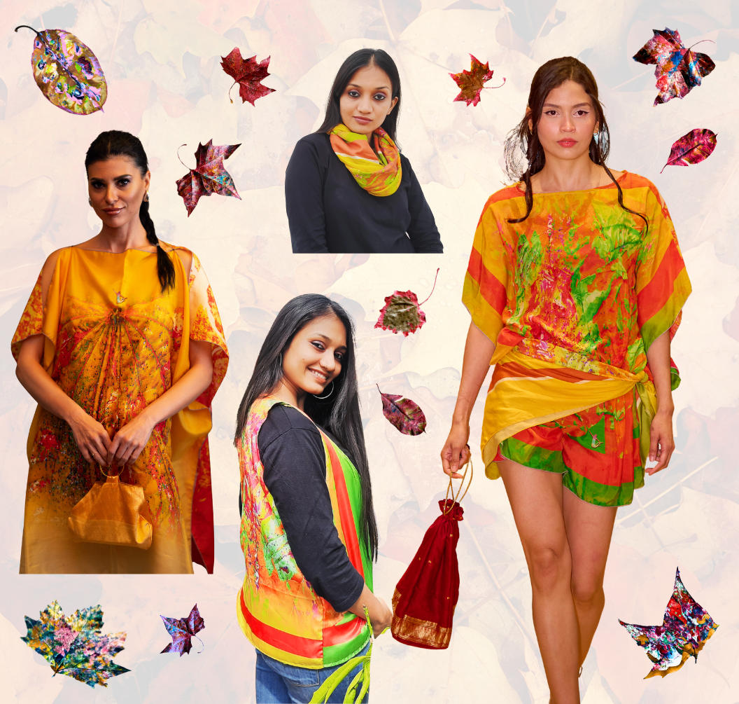 All our scarves and wraps are 100% natural silk. They are made right here in Spain from concept to completion. At the same time, any waste material we incur in our production, we collect them all to reuse and repurpose them at our Amma´s Atelier to re-create ´magic´ with them so they can become scrunchies, vests, handbags, or whatever our customers need.
